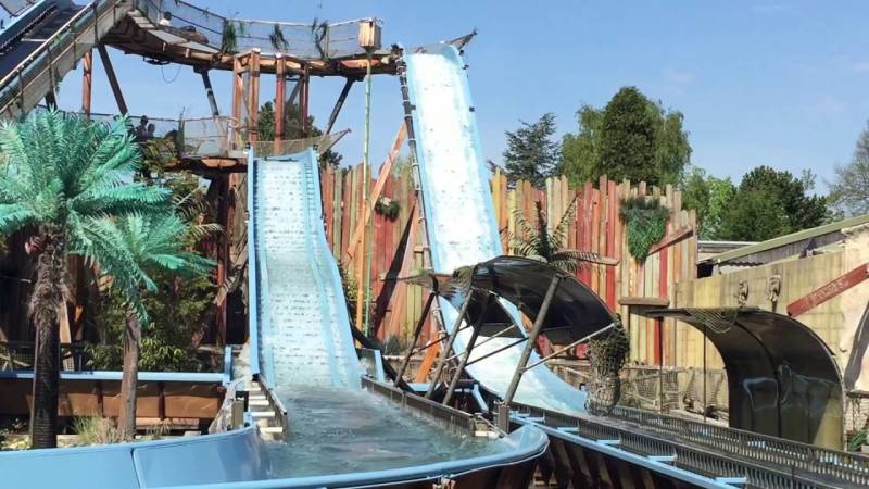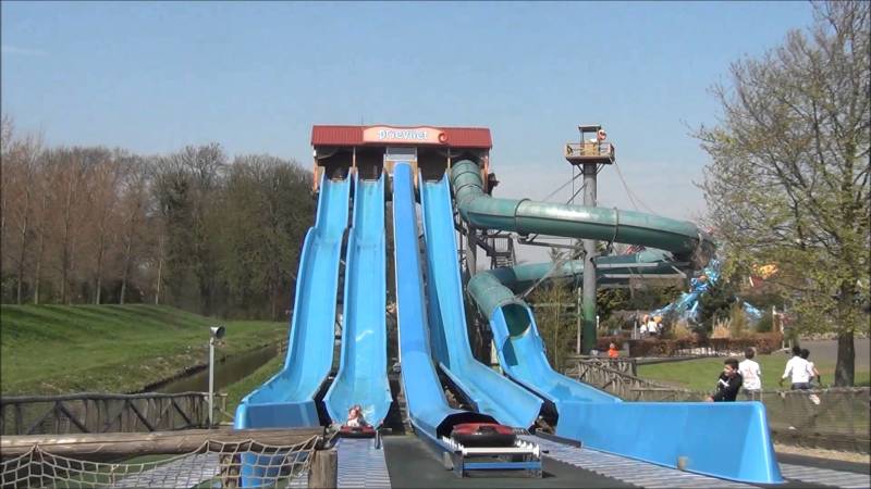 de 5 glijbanen waar je met een bootje van af kan glijden